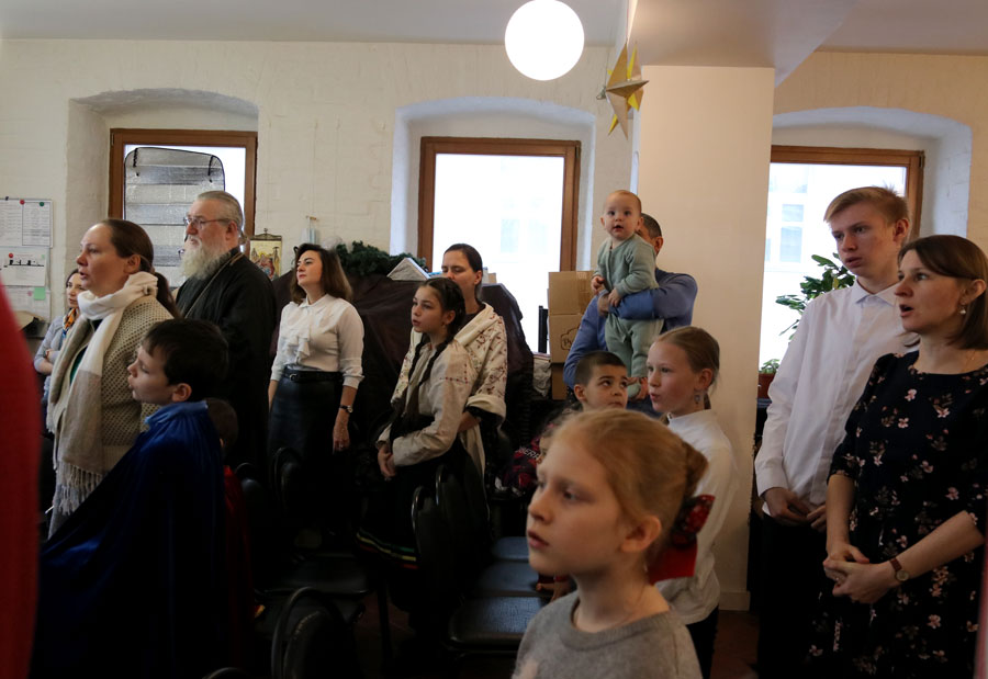 Прежде всего дети и их родители радостно пропели тропарь праздника Рождества Христова. Затем к нимобратился с приветственным словом духовник воскресной школы протоиерей Николай Скурат. Он сердечно поздравил всех со светлым праздником Рождества Христова, а также передал приветствие и благословение настоятеля храма отца Максима.