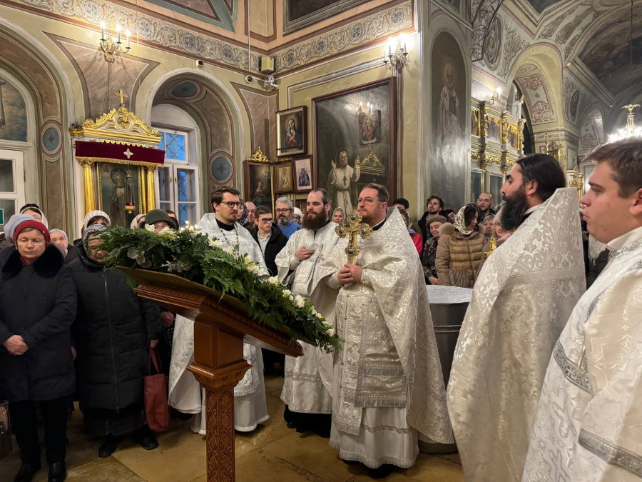 Вечером прошло торжественное всенощное бдение, состоявшее из великого повечерия с литией и утрени. В день праздника Крещения Господня были совершены две Божественные литургии свт. Василия Великого. Раннюю возглавил настоятель храма протоиерей Максим Шевцов, позднюю — протоиерей Николай Скурат. Обе литургии завершились чином великого освящения воды.