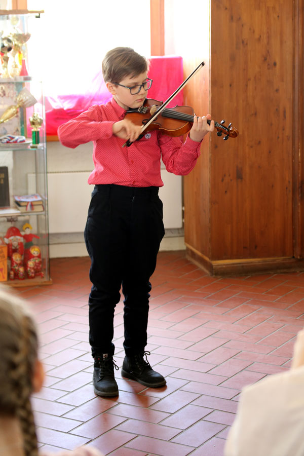 В музыкально-инструментальном отделении прозвучали произведения И. С. Баха, Л. Бетховена, Р. Шумана, К. Черни, В. В. Козлова, М. Клементи, Ж. Ф. Мазаса, Ж. Хартога, И. Плейеля и др. Ребята пели военно-патриотические песни, посвященные Дню Победы, рассказывали стихи.