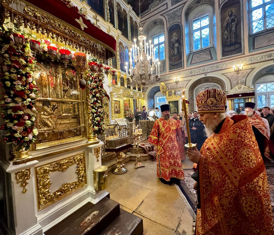 По окончании литургии состоялось славление Пресвятой Богородицы перед Её чудотворным образом «Нечаянная Радость». Митрополит Григорий прочитал молитву Божией Матери. Едиными устами верующие пропели величание Пресвятой Богородице.