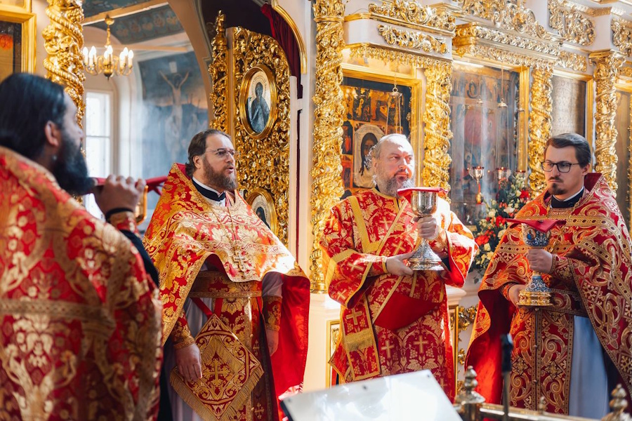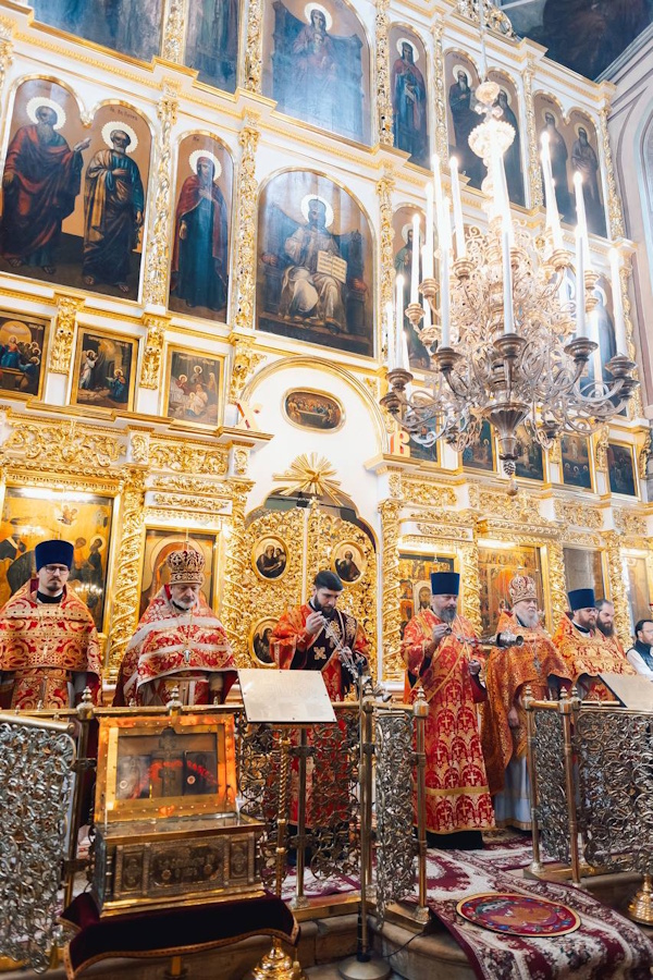 На сугубой ектении были вознесены особые прошения, Высокопреосвященнейший владыка прочитал молитву о Святой Руси.
