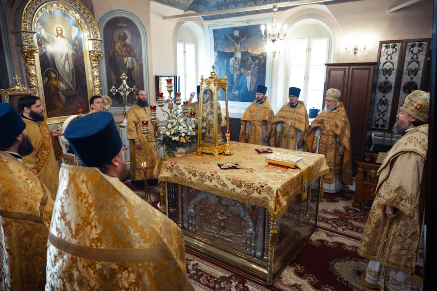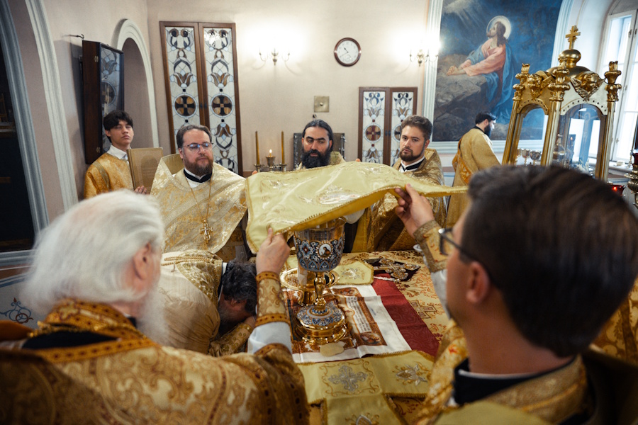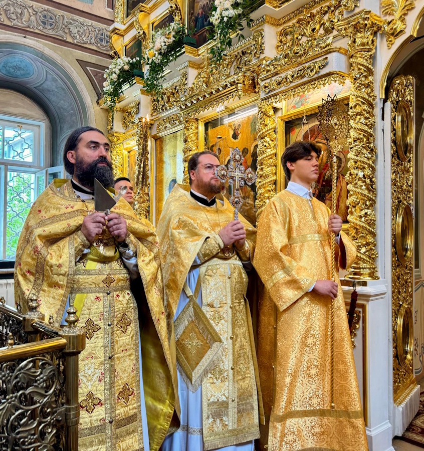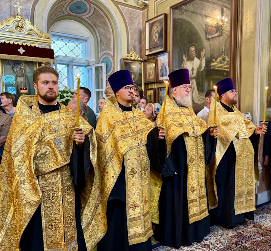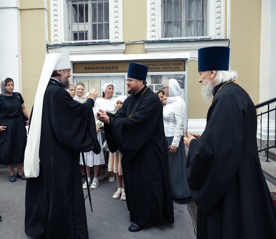 Его Высокопреосвященству сослужили протопресвитер Владимир Диваков, секретарь Святейшего Патриарха по г. Москве, благочинный Центрального округа, настоятель храма пророка Божия Илии в Обыденском переулке протоиерей Максим Шевцов и духовенство храма. Диаконский чин возглавил протодиакон Николай Филатов.