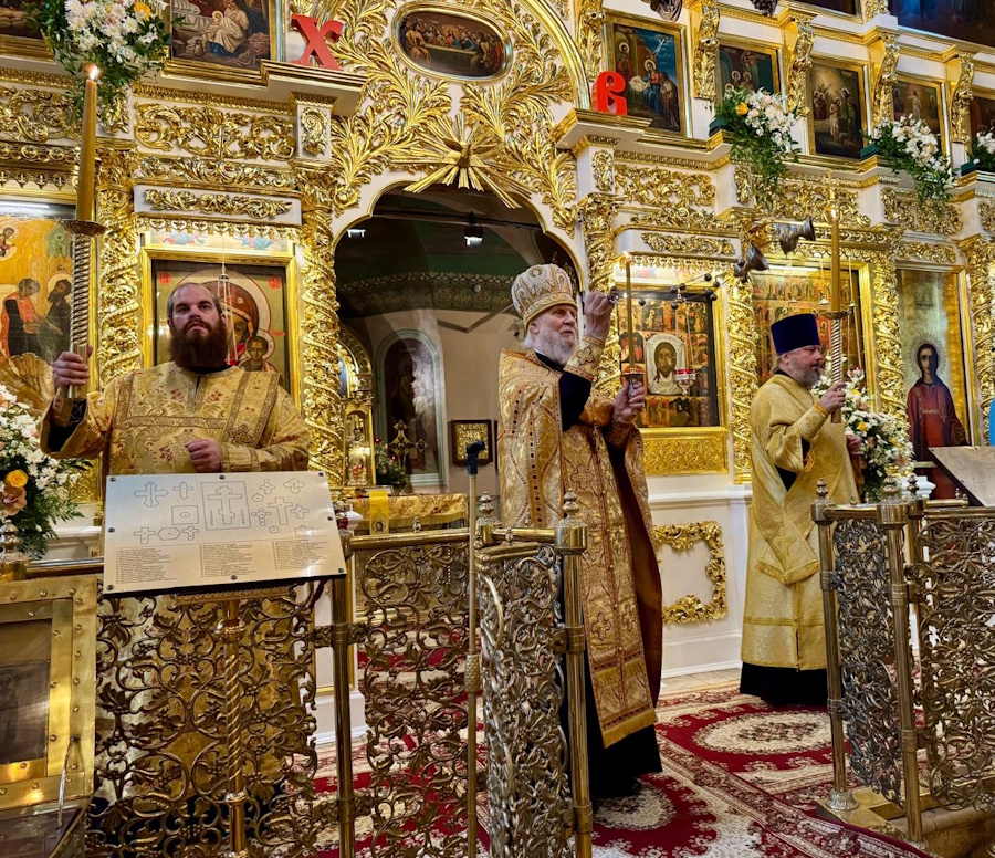 На сугубой ектении были вознесены особые прошения. После сугубой ектении Высокопреосвященнейший владыка Григорий вознес молитву о Святой Руси.