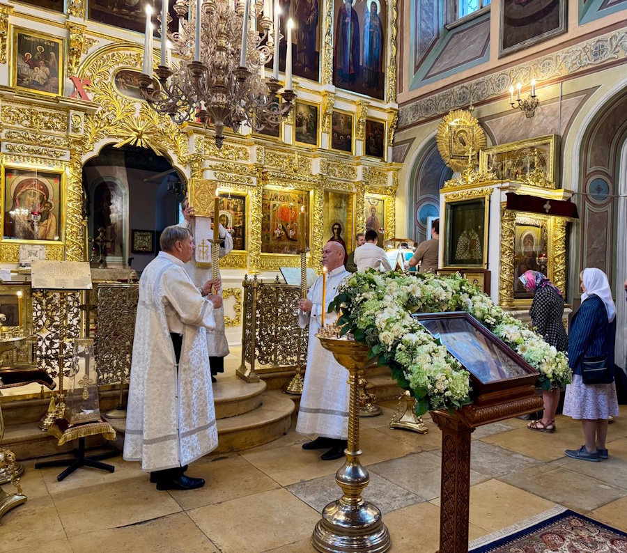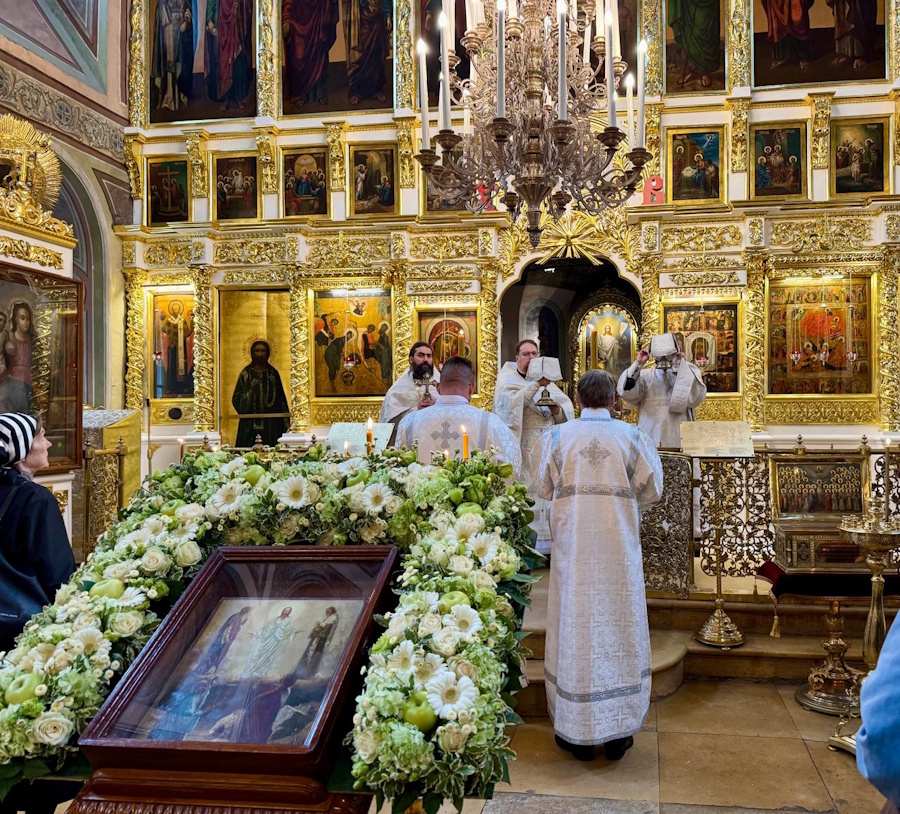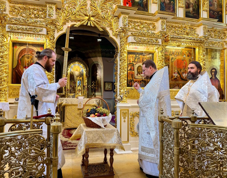 18 августа, в канун праздника, было совершено всенощное бдение. Белоснежные облачения духовенства, праздничное убранство храма, яркий свет паникадил, беленькие платочки на головах прихожанок — все напоминало о сиянии преобразившегося на горе Фавор Господа нашего Иисуса Христа.