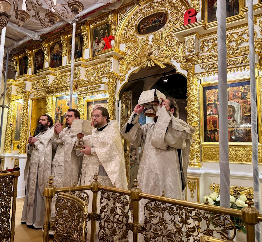 Вечером прошло торжественное всенощное бдение, состоявшее из великого повечерия с литией и утрени. В день праздника Крещения Господня были совершены две Божественные литургии свт. Василия Великого. Обе литургии завершились чином великого освящения воды.