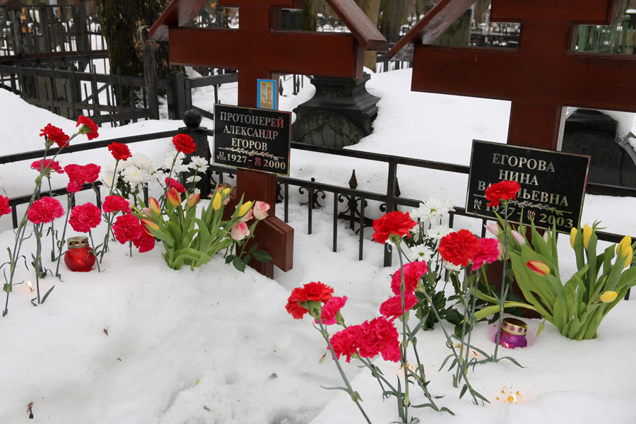 После молитвы на месте упокоения батюшки собравшиеся не смогли традиционно посетить многие могилы почивших клириков и прихожан нашего храма и пропели им «вечную память» у могилы отца Александра — из-за сильной заснеженности к большинству чтимых могил доступа не было. Даже на открытых участках кладбища последние снегопады уходящей зимы намели сугробы по пояс. К месту погребения нашего батюшки по глубокому снегу была прокопана тропа.