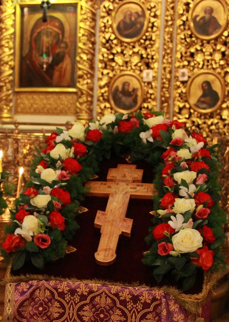 Поклонение Животворящему Кресту Господню, вынесенному на воскресном всенощном бдении, продолжается. На четвертой (Крестопоклонной, или Средокрестной) седмице оно включено в богослужение понедельника, среды и пятницы.
