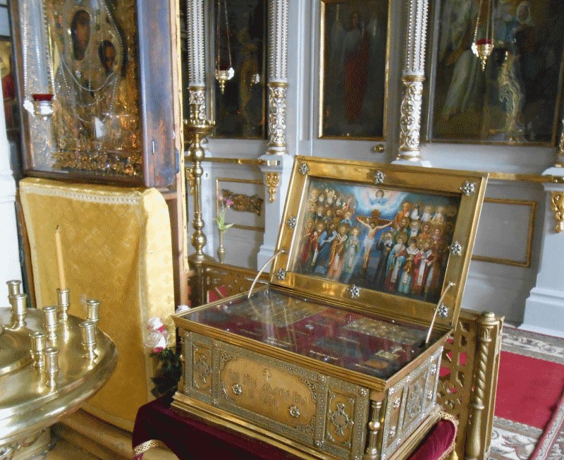 В мощевике, расположенном в правом приделе нашего храма, находится частица мощей этого святого.