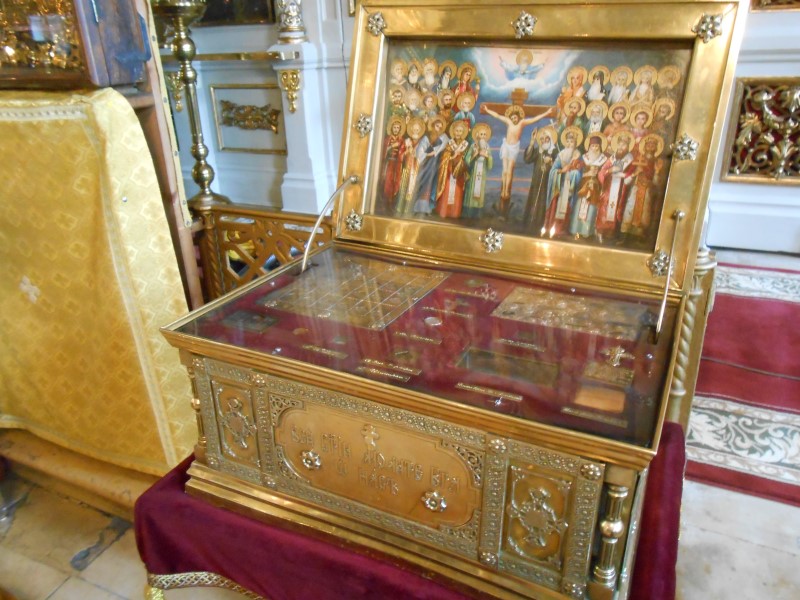 В 1800 году в Москву приезжал черногорский архимандрит Стефан Вукович. Московский мастер-серебряник Трифон Добряков изготовил в дар для хранящейся в Черногории честной главы своего небесного хранителя серебряную раку и преподнес ее почетному гостю. Полученные им в ответ частицы святых мощей в 1819 году были вложены в дорогие ковчежцы и вделаны в икону св. Трифона храма в Напрудной слободе.