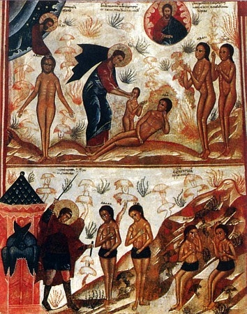 Итак, преступив заповедь Божию, Адам оделся в смертную плоть, был проклят и изгнан из рая; и повелено было, чтобы огненный меч охранял его вход. Адам же, сидя напротив (рая), плакал (о том), скольких благ лишился из-за того, что не постился в свое время. И в его лице весь человеческий род подвергся проклятию, пока Создатель наш, пожалев наше естество, погубленное сатаною, не возвел нас снова в первозданное достоинство, родившись от Святой Девы и безгрешно пожив, показав нам путь через противоположное тому (что сделал Адам), то есть пост и смирение, и победив прельстившего нас хитростью.
