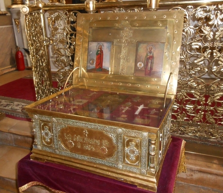 В нашем храме, в левом мощевике у главного алтаря, хранится частица мощей этого святого.
