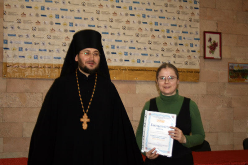 На закрытии выставки с приветственным словом к собравшимся обратился помощник настоятеля храма Иоанна Богослова, преподаватель РПУ иеромонах Матфей (Мунтяну), который от имени руководства университета поблагодарил участников выставки за интересные работы, украсившие актовый зал РПУ. В завершении участникам выставки были вручены благодарности Комиссии по церковному просвещению и деятельности воскресных школ при Епархиальном совете г. Москвы.