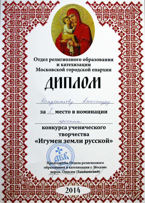 29 апреля 2014 г. состоялось награждение победителей конкурса ученического творчества «Игумен Земли Русской», посвященного 700-летию со дня рождения преподобного Сергия Радонежского.