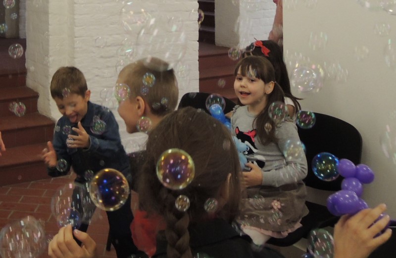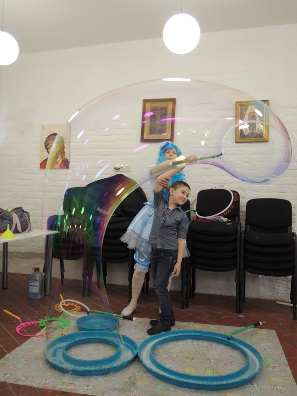 Приглашенные аниматоры в образе любимых ребятами сказочных персонажей Буратино и Мальвины умело сочетали подвижные и шумные игры со спокойными, но не менее увлекательными заданиями и викторинами. Особое впечатление произвели на всех забавы с мыльными пузырями.