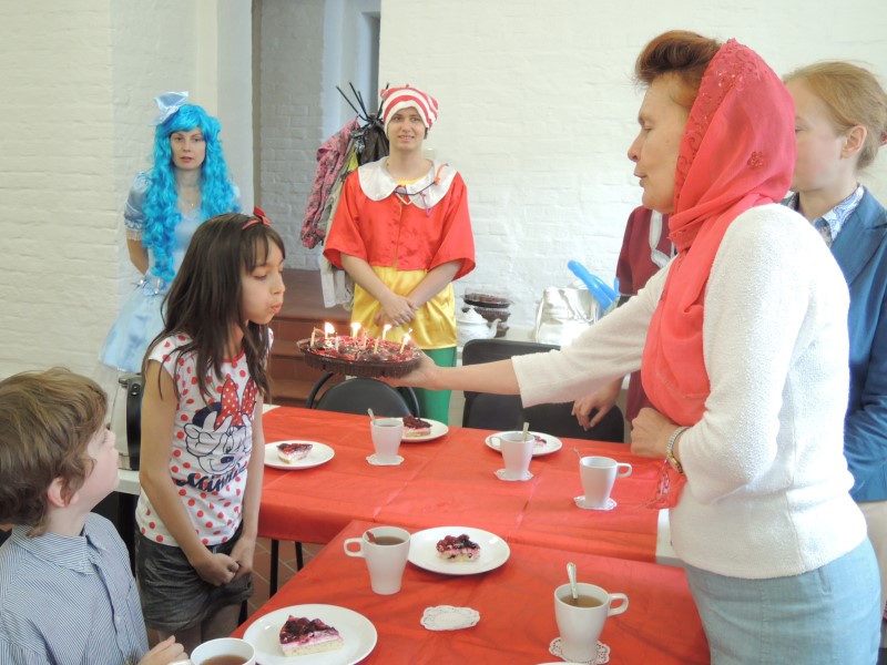 Три часа веселого праздника, наполненные шутками, танцами и, конечно, сюрпризами, пролетели быстро и совсем неутомительно даже для самых маленьких его участников. Но все же традиционный чай с вкусным пирогом был в конце встречи очень кстати.