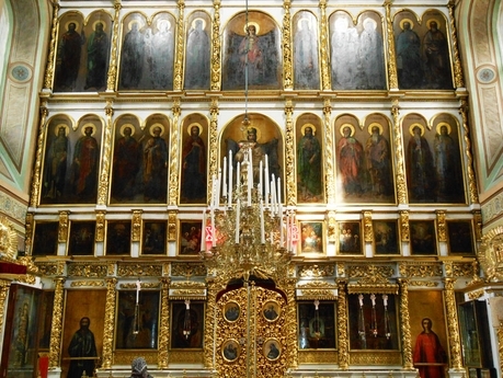 В нашем храме образ равноапостольных Констанитина и Елены расположен в центральном иконостасе.