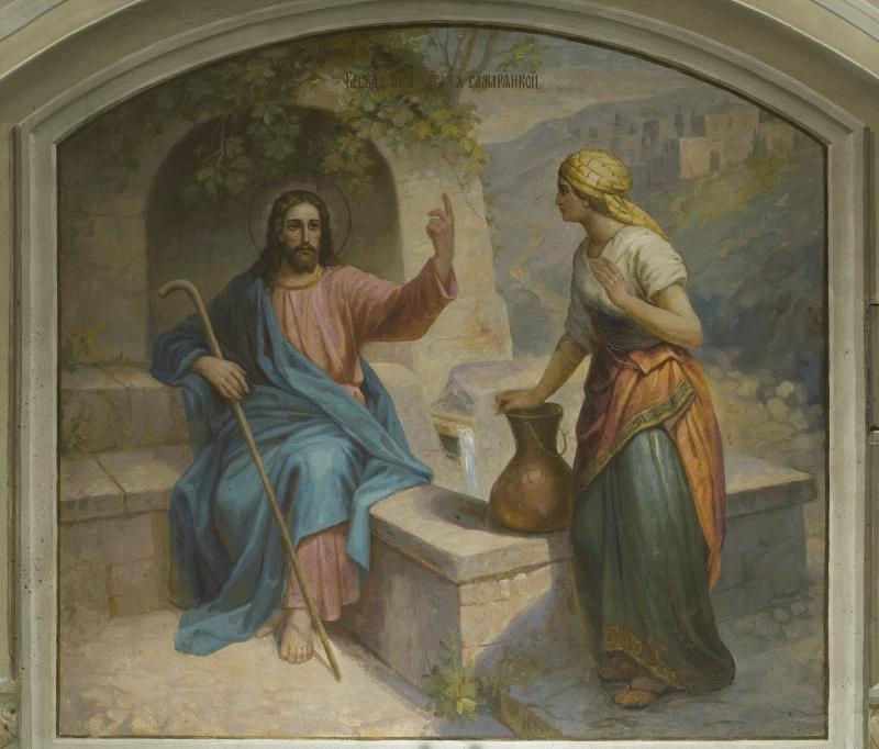 Одна из росписей придела святых Симеона Богоприимца и Анны пророчицы в нашем храме изображает беседу Господа с самарянкой.