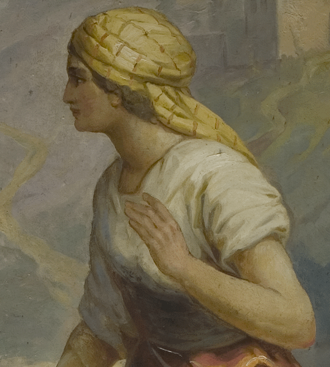 Какой момент встречи, полностью перевернувшей жизнь самарянки, изображен на росписи западной стены левого придела? Кажется, уже прошло удивление женщины, вызванное обращенной к ней, презренной иноплеменнице, просьбой: «Дай Мне пить». По всей видимости, она уже услышала еще более поразительные слова о воде, текущей в жизнь вечную. И несмотря на то, что звучит обличение ее в грешной, блудной жизни, она торопится задать важный для нее вопрос, где должно поклоняться Богу. Ведь она знает, что «придет Мессия, то есть Христос». Сейчас женщина услышит: «Это Я, Который говорю с тобою», бросит водонос и стремительно побежит звать людей к Тому, Кто сказал ей все, что она сделала…