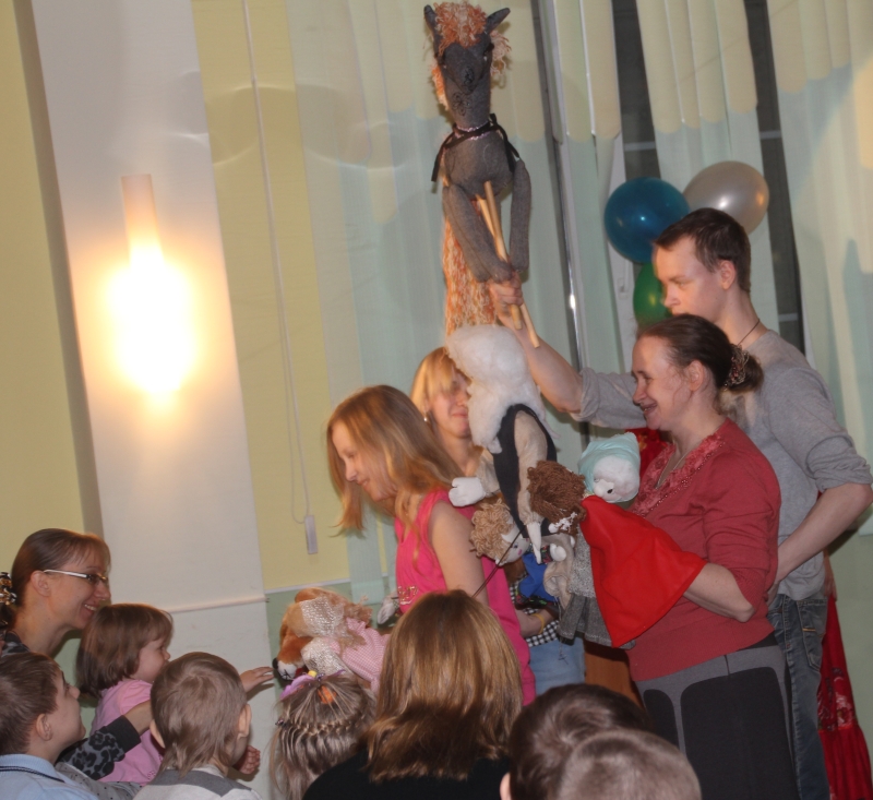 Показанный затем «Маленьким театром» кукольный спектакль «Как молодец счастье искал» приобщил собравшихся — и больших, и маленьких — к кладезю народной мудрости и неисчерпаемого остроумия. Кстати, оказалось, что юные посетители социального центра знают немало русских пословиц и поговорок, которые они в этот день с радостью вспомнили и поделились с собравшимися на праздник.