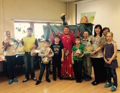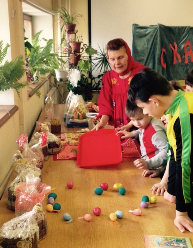 В субботу социальный работник Галина Евгеньевна Попова и юные артисты театральной студии «Маленький театр» (руководитель Татьяна Геннадьевна Митюшина), захватив пасхальные подарки — ароматные куличи и яркий пряничный домик, отправились в детский дом № 19 на Спартаковской площади, который уже не первый год окормляется Обыденским храмом.