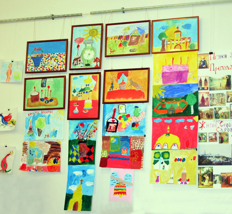 Учащиеся детских групп воскресной школы под руководством педагогов М.В. Судаковой и А.Н. Скурат подготовили рисунки на пасхальную тему. Лучшие работы детей участвовали в пасхальной выставке, организованной Центральным и Южным викариатствами города Москвы.