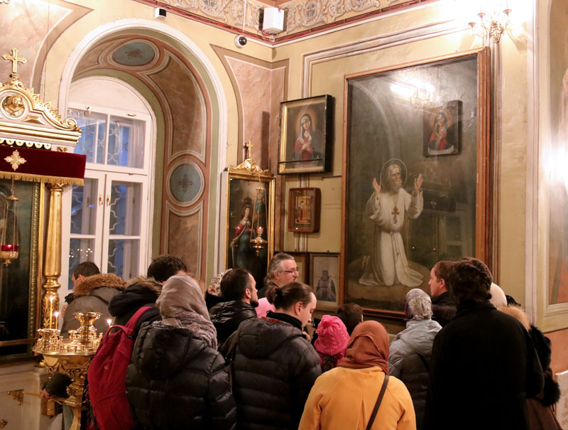 Молодые люди, совершавшие паломничество к святыням Старой Москвы, приехали во главе со своим приходским священником Давидом Шуплецовым. Они приложились к чудотворной иконе Божией Матери «Нечаянная Радость», частице Пояса Пресвятой Богородицы, святым иконам и мощам и другим святыням никогда не закрывавшейся Илие-Обыденской церкви и дружным хором прославили Царицу Небесную.