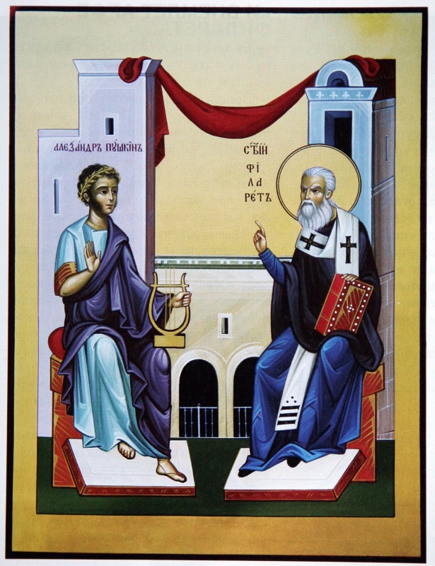 Нельзя не вспомнить знаменитый поэтический диалог святителя Филарета с великим русским поэтом Александром Пушкиным. В своем стихотворении «Дар напрасный, дар случайный…» поэт жалуется на праздность ума, тоску и однозвучность жизни. Но митрополит в стихотворной форме ответил поэту, напомнив, что мы сами делаем выбор в пользу зла и только призыв к Создателю созидает чистое сердце. Пушкин, тронутый силой слова святителя, написал еще одно чудесное стихотворение о том, что поэт «в священном ужасе» внемлет арфе Филарета, призывающей душу и совесть к самому верному лекарству — покаянию.