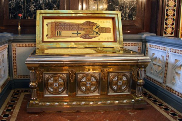 В 1994 году митрополит Филарет был причислен к лику святых, а 9 июня 2004 года его мощи были торжественно перенесены из Успенского собора Лавры в Москву, в возрожденный Храм Христа Спасителя, в проектирование и создание которого святитель при жизни внес неоценимый вклад. Мощи святого, ставшие одной из главных святынь кафедрального собора Русской Православной Церкви, почивают здесь в раке к югу от Царских врат. И прихожане нашего храма, расположенного в непосредственной близости от Храма Христа Спасителя, всегда имеют возможность поклониться и помолиться святителю Филарету, митрополиту Московскому.