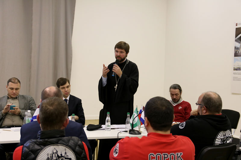 На круглом столе обсуждались вопросы духовной и физической культуры современной молодежи, а также взаимодействие Русской Православной Церкви и спортивного сообщества (спортсменов, болельщиков, спортивных клубов и проч.).