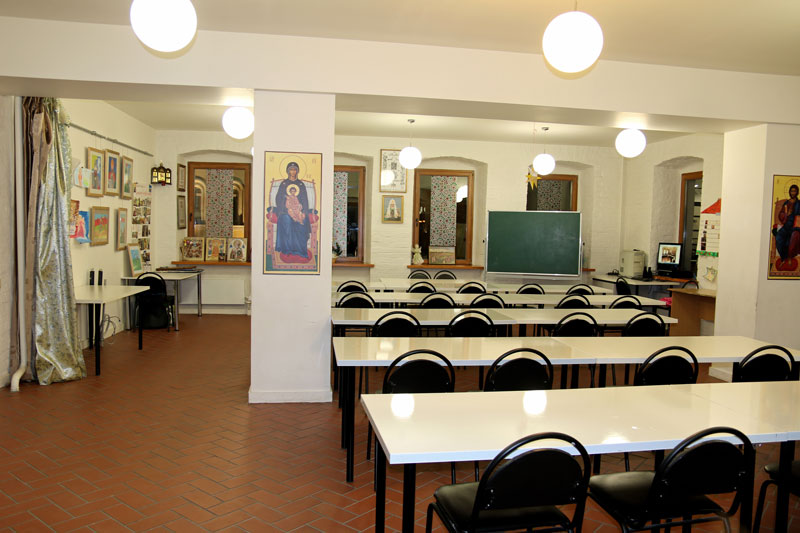 Так и в этом году они провели уборку в залах воскресной школы — вымыли окна, навели порядок в шкафах. Родители детей украсили стены зала детскими рисунками в деревянных рамках, заменив в них стекла на безопасный пластик.