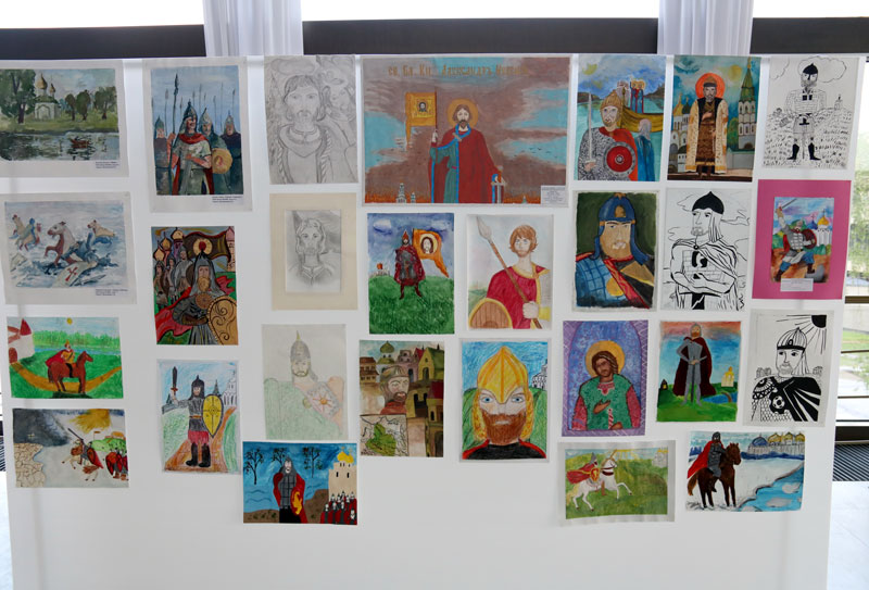 В фойе была организована выставка лучших художественных работ участников Московского городского конкурса детского творчества «Александр Невский — имя России». В этом конкурсе участвовали рисунки двух учащихся Илие-Обыденской детской воскресной школы Полины Качалиной и Марии Пекарской, выполненные под руководством педагога Марии Валерьевны Судаковой. Работа Полины «Святой князь Александр Невский» была представлена на выставке.