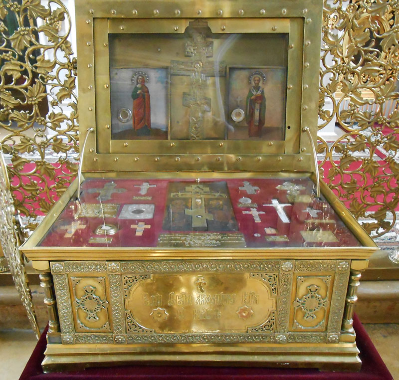 Частица мощей этого угодника Божия хранится в нашем храме в левом мощевике у главного алтаря.
