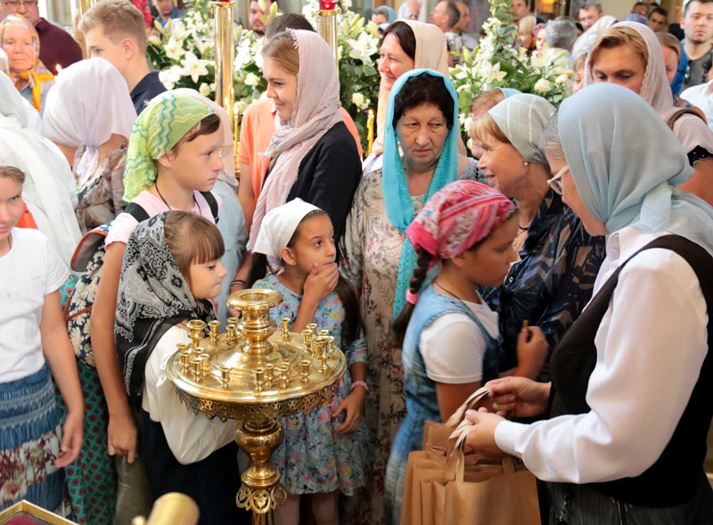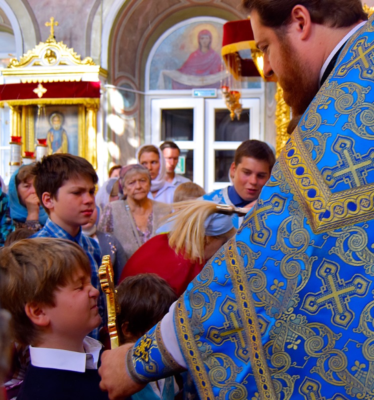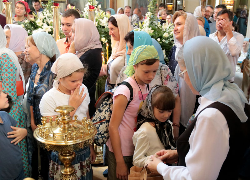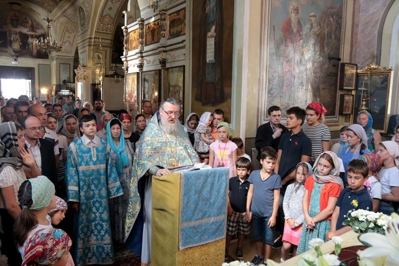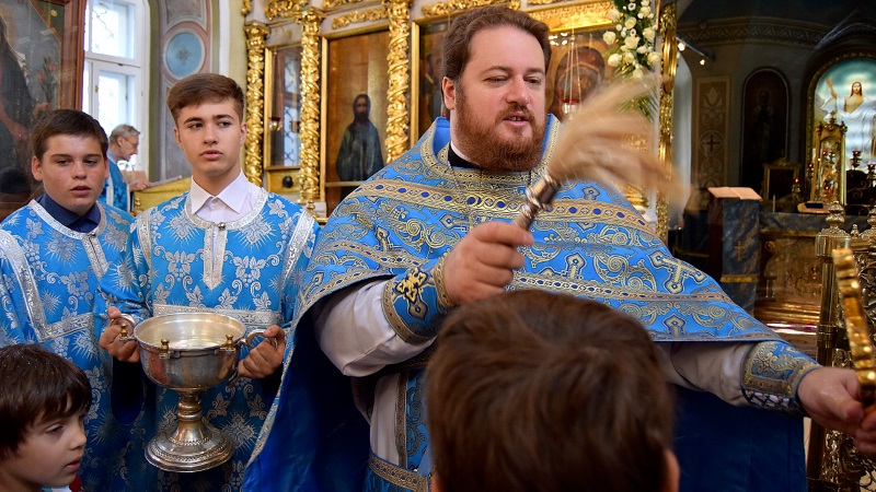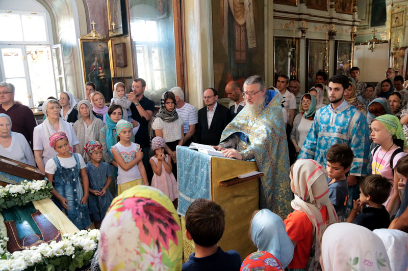 В этом году праздник Успения Пресвятой Богородицы совпал с воскресеньем. В сугубо праздничный день в храм пришли взрослые прихожане, молодежь прихода и дети, собирающиеся 1 сентября начать новый учебный год. Многие учащиеся причастились Святых Христовых Тайн. По благословению настоятеля нашего храма протоиерея Максима Шевцова после ранней и поздней литургий были отслужены молебны перед началом учения, и все учащиеся, педагоги, родители и воспитатели детей были окроплены святой водой, а школьники получили от прихода к 1 сентября подарки, полезные для учебных занятий. Молебен после ранней литургии при большом стечении прихожан совершил протоиерей Максим Шевцов в сослужении клириков храма протоиерея Андрея Чернеева и иерея Андрея Дорохина. Протоиерей Николай Скурат отслужил молебен после поздней литургии.