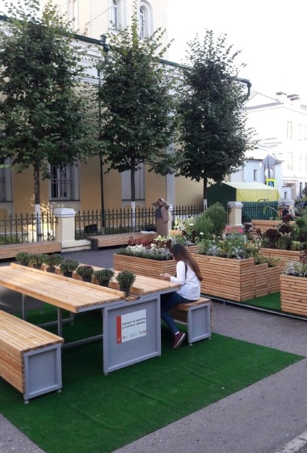 В пешеходной зоне, появившейся между Обыденским храмом и зданием воскресной школы в прошлом году, создано новое общественное пространство. По замыслу авторов проекта, оно должно стать одним из любимых мест отдыха и общения москвичей. К Дню рождения Москвы в Обыденском переулке разбили «городской огород». К имевшимся лавочкам и велопарковкам добавились мини-грядки, кадки с деревьями, многолетними растениями и цветами, скамьи-лежаки и даже качели, которые в это воскресенье уже доставили немало радости вышедшим из храма после богослужения юным обыденским прихожанам.