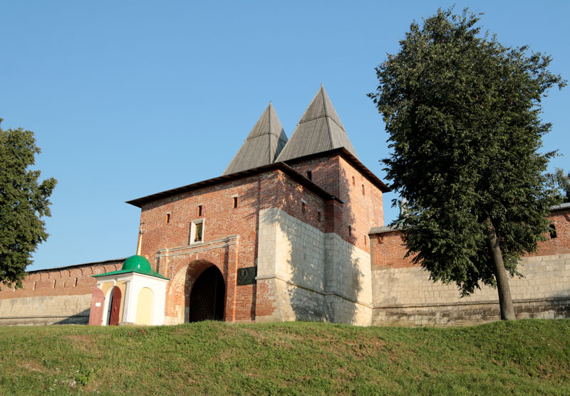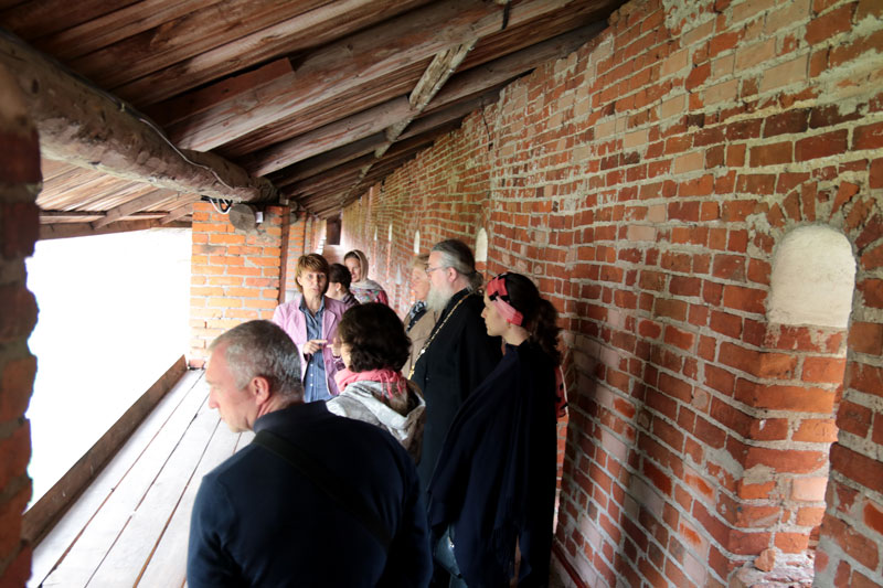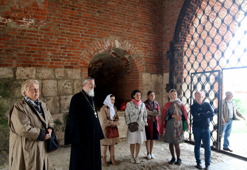 Группа побывала в Зарайском кремле, где для нее была проведена экскурсия по стенам и башням единственного почти целиком (с учетом реставрации) сохранившегося в Московской области кремля, выдающегося памятника русского оборонного зодчества XVI века. Главный собор города, Никольский (XVII в.), сейчас находится на реставрации. Паломники побывали в Иоанно-Предтеченском соборе, где поклонились чудотворной иконе святителя Николая Зарайского. Они пропели тропарь и величание этому угоднику Божию. Затем группа побывала на месте погребения князей-мучеников Феодора, Евпраксии и Иоанна.