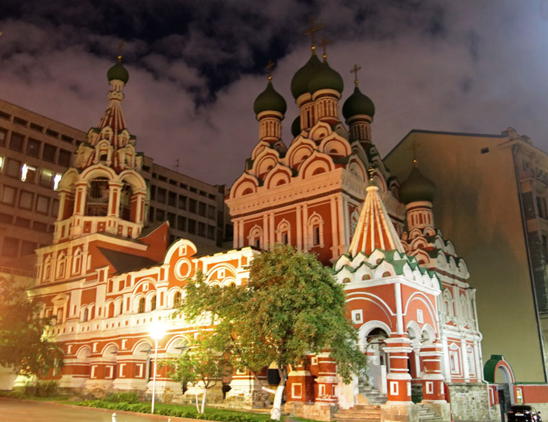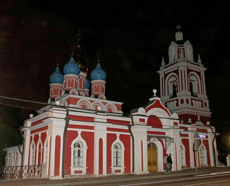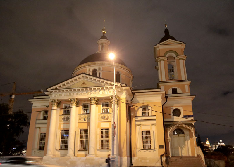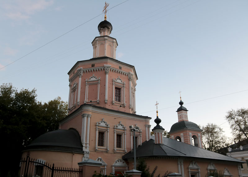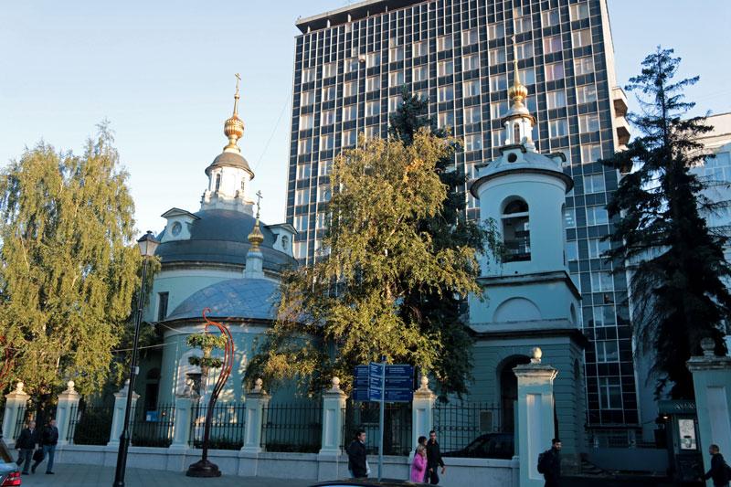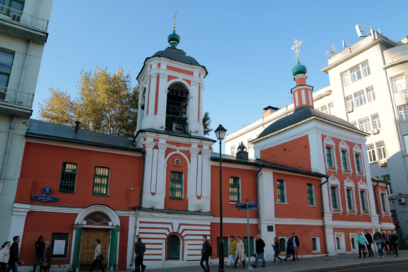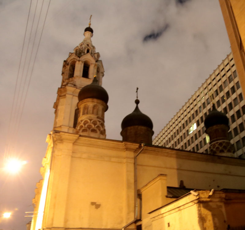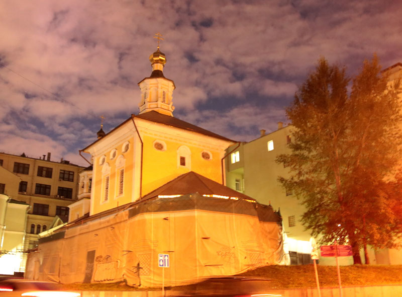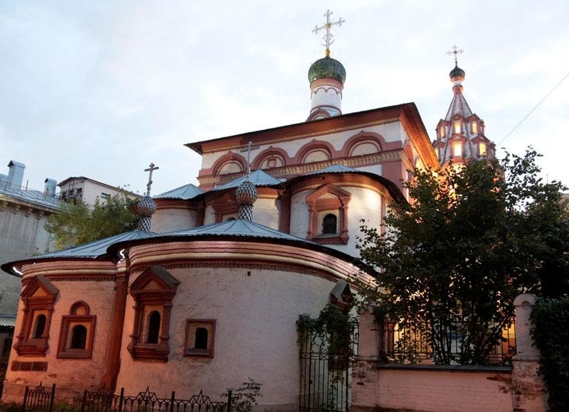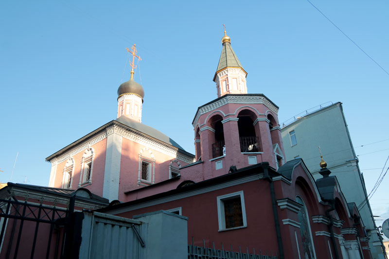 Следующей точкой маршрута стала церковь Трех святителей на Кулишках. Так называли невырубленные участки леса, покрывавшего в древности высокий водораздельный холм между Москвой-рекой и Яузой. Современное здание двухэтажного трехпрестольного храма было построено в