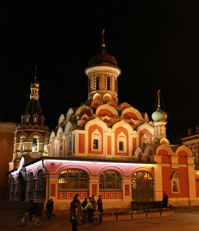 Затем группа направилась к восстановленному Казанскому собору на Красной площади. Храм-памятник был возведен в