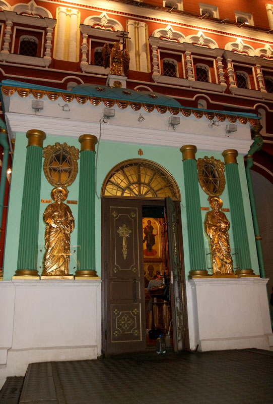 Последней точкой маршрута стала Иверская часовня у Воскресенских ворот (разделяющих Красную и Манежную площади), приписанная к храму Богоявления бывшего Богоявленского монастыря. Она была построена в честь чудотворной Иверской иконы Божией Матери — списка с иконы Вратарницы, хранящейся в монастыре на Святой Горе Афон в Греции. Этот список был доставлен в Россию в