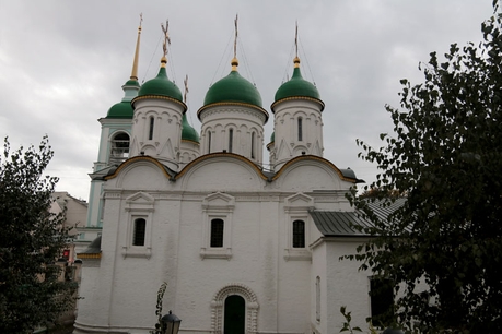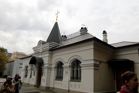 Далее они направились к Московскому Троицкому подворью Свято-Троицкой Сергиевой Лавры. Первое подворье Троицкого монастыря в Москве появилось в Кремле еще при жизни преподобного Сергия (земля была пожалована великим князем Дмитрием Донским). Оно дало имя Троицкой башне Кремля, близ которой располагалось. Екатерина II в 1764 г. изъяла монастырские земли в казну при секуляризации, подворье было закрыто. На том месте сейчас находится Государственный Кремлевский дворец (построенный как Дворец съездов КПСС). Второе подворье Троицкой обители располагалось в Китай-городе на Ильинке (земля была в 1535 г. подарена Лавре одним московским купцом). В 1876 г. на территории подворья построили первый в Москве пятиэтажный доходный дом в русском стиле (Ильинка, 5). В 1609 г. Василий Шуйский подарил Сергиевой обители загородное подворье за Сретенскими воротами. В 1631 г. иждивением Сергиева монастыря здесь была выстроена деревянная приходская церковь во имя Живоначальной Троицы с приделом преподобных Сергия и Никона Радонежских. В 1708 г. на этом месте возвели каменный храм. Паломники посетили Троицкую церковь. В приходе Троицкого храма жил прадед А. С. Пушкина, лейб-гвардеец Преображенского полка Александр Петрович Пушкин. Другими известными прихожанами церкви были великий историк Москвы Иван Михайлович Снегирев и выдающийся художник Виктор Михайлович Васнецов.