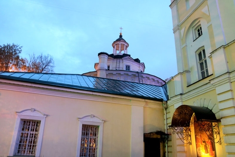 Паломники посетили храм Сошествия Святого Духа на Лазаревском кладбище. Оно было открыто в 1750 г. и названо по кладбищенской деревянной церкви во имя святого Лазаря Четверодневного. В 1786 г. вместо деревянной была выстроена каменная церковь Сошествия Святого Духа с приделами святого праведного Лазаря и евангелиста Луки. В 1923 г. на Лазаревском кладбище был похоронен ныне прославленный в лике праведных протоиерей Алексий Мечев, в погребении которого принимал участие святитель Тихон, Патриарх Всероссийский. (Позднее отец Алексий Мечев был перезахоронен на Немецком Введенском кладбище, и теперь наши прихожане, поминающие похороненного недалеко обыденского батюшку протоиерея Александра Егорова, посещают также и могилу, в которой до обретения покоились мощи московского святого.) Храм в 1920-е годы закрыли, в нем разместилось рабочее общежитие, затем мастерские театра оперетты. В 1992 г. церковь вернули верующим. Обыденские паломники поклонились храмовым святыням и осмотрели экспозицию приходского музея у входа в храм.