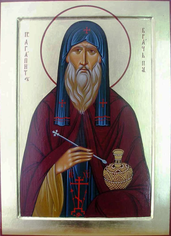 Обратимся с верою, надеждою и любовью к преподобному Агапиту, врачевателю душ и телес, да помолится блаженный за нас ко Господу Иисусу Христу и дарует нам здравие душевное и телесное!