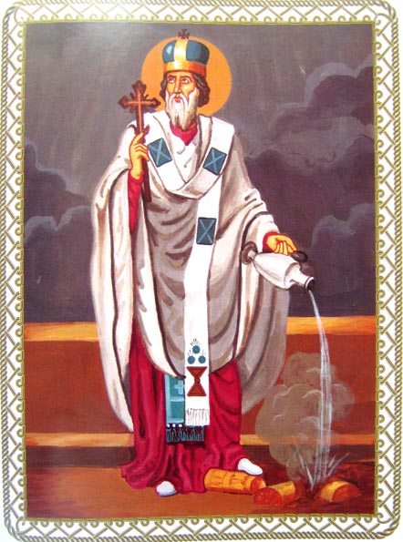 Говорят, что одной из целей прихода в Грузию ассирийских отцов было освобождение грузинского христианства от усилившихся влияний монофизитов, в чем они с помощью Божией преуспели. Тем более не могли они мириться с религией огнепоклонников. Один из зороастрийских храмов находился в городе Некреси, существовавшем тогда в долине, и наверняка был виден с монастырских высот. Может быть, именно в нем епископ Або совершил поступок, который не мог остаться без наказания. К тому времени святой уже обошел многие селения своей епархии, развенчивая лжерелигию, возвращая к истинной вере свою паству и даже просвещая многих персов. И однажды владыка «убил бога», как обвиняли его потом зороастрийцы. Он просто… вылил кувшин воды в «священный» огонь и погасил его! Вот почему на некоторых иконах святого изображают также с сосудом в руках!