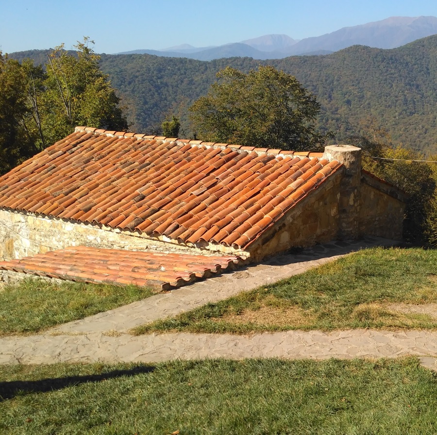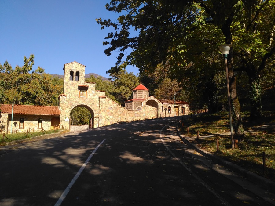 Путь к обители непрост. Туда ведет довольно крутая и извилистая дорога, по которой даже нашему, не очень большому, автобусу было не проехать. О пешей прогулке вверх не позволяли мечтать ни ограничивающее современного паломника время, ни одолевающие его немощи. Спасибо братии за два специальных монастырских микроавтобуса, курсирующих в течение всего дня! Так что уже через несколько минут, не успев пережить впечатления от горного серпантина, мы замерли, пораженные видом на долину…