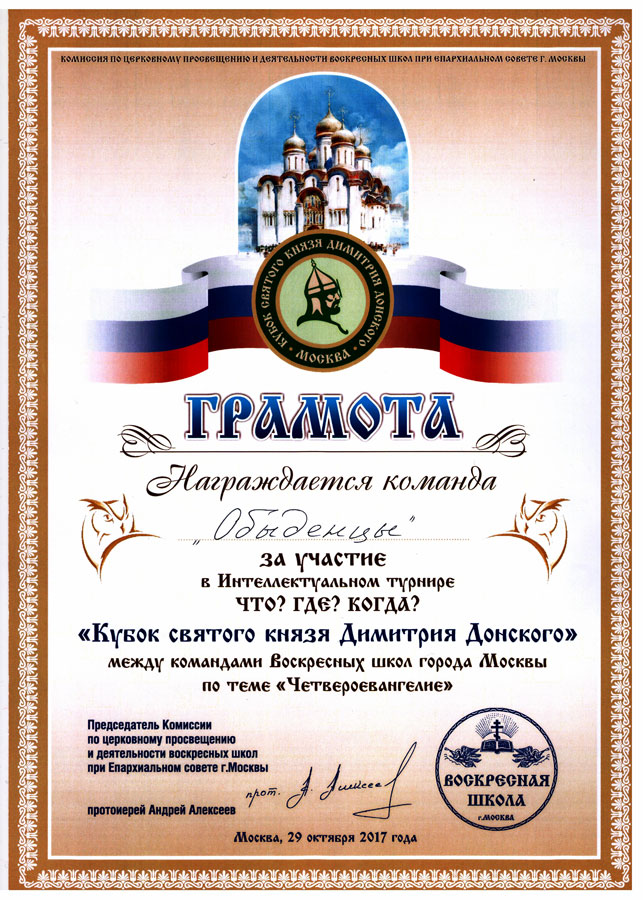 Интеллектуальный турнир «Что? Где? Когда?» в Бутове. 29 октября 2017 г.
