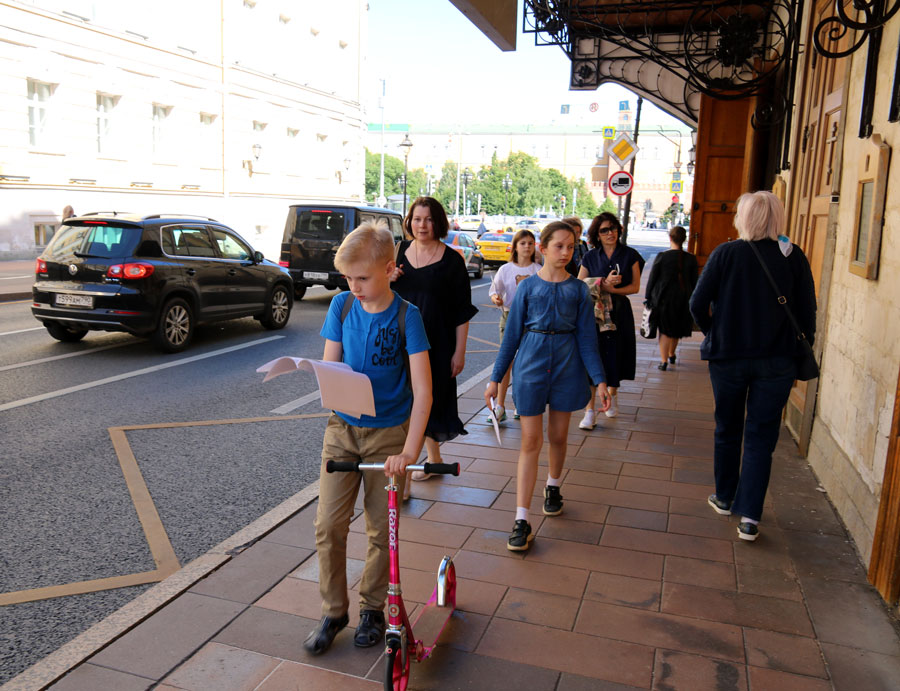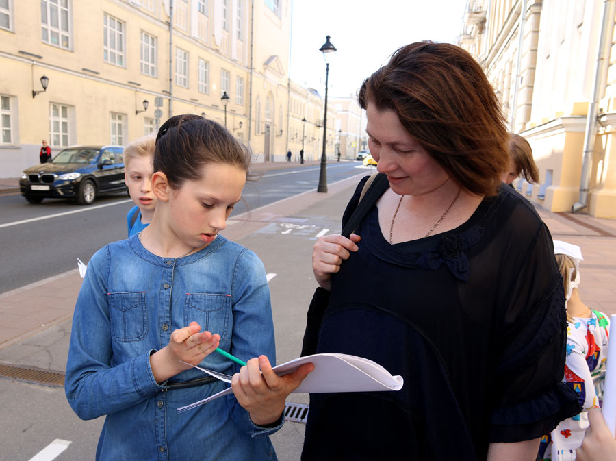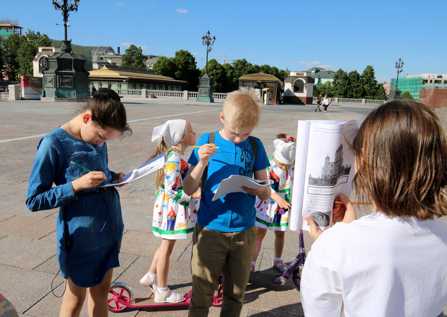 Маршрут путешествия составил около трех с половиной километров. Самые маленькие участники взяли с собой самокаты. Ребята должны были узнать, как называется тот или иной храм, ответить на вопросы, связанные с его историей, святынями и архитектурой. Все дети успешно справились с заданиями. Так они ближе познакомились с девятью московскими храмами: Вознесения Господня у Никитских ворот и на Большой Никитской, святителя Николая в Старом Ваганькове, иконы Божией Матери “Знамения” на Шереметьевом дворе и др.