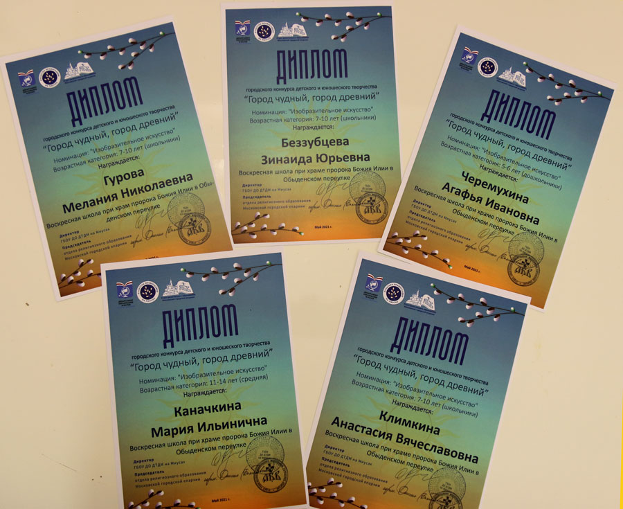Ученикам воскресной школы вручили дипломы городского конкурса «Город чудный, город древний».