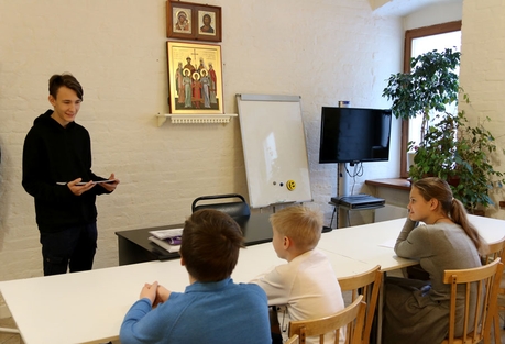 Учащийся старшей группы детской воскресной школы провел занятие о священномученике Серафиме (Чичагове).