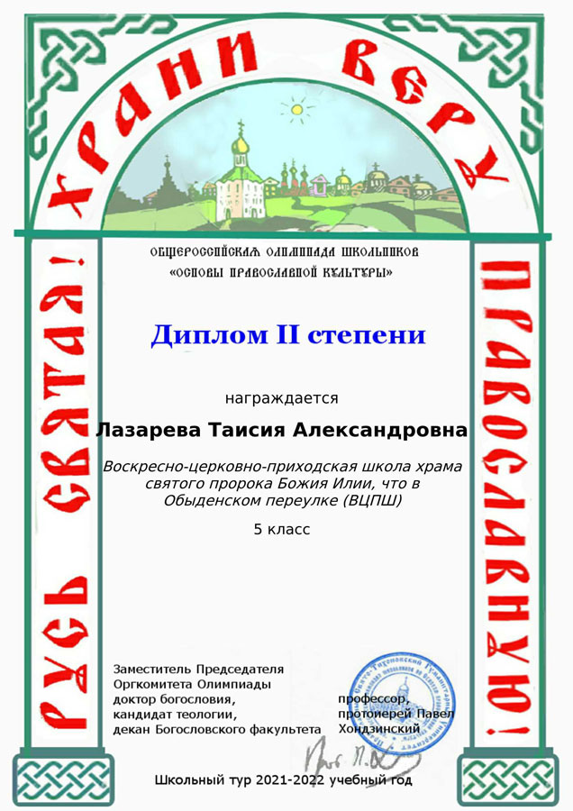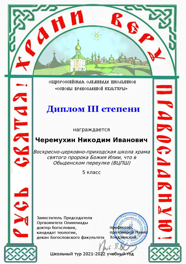Итоговая информация приходской олимпиады была передана электронными средствами в оргкомитет общероссийской олимпиады. Учащиеся нашей воскресной школы получили сертификаты участников и дипломы разной степени.