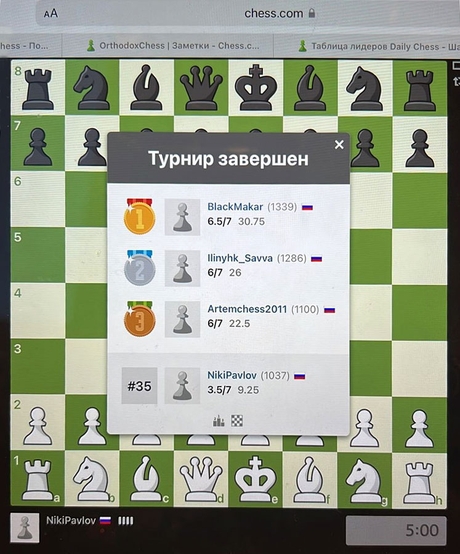 В турнире принял участие ученик нашей воскресной школы — Николай Павлов. Он одержал три победы и одну партию сыграл вничью.