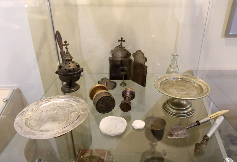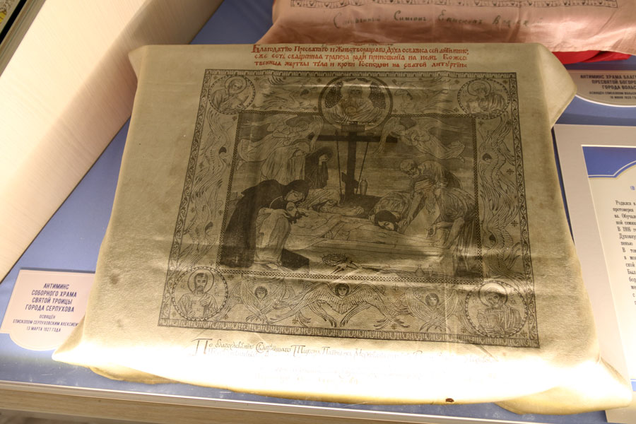 Преподаватели нашей воскресной школы также ознакомились с докладами на тематической секции «Церковная история» и посетили семинарский музей. Экскурсию по музею провел студент 2-го курса магистратуры МДА иеромонах Владимир (Муравьев). В музее можно увидеть многие антиминсы — как древние, так и советского периода, освященные новомучениками Церкви Русской.